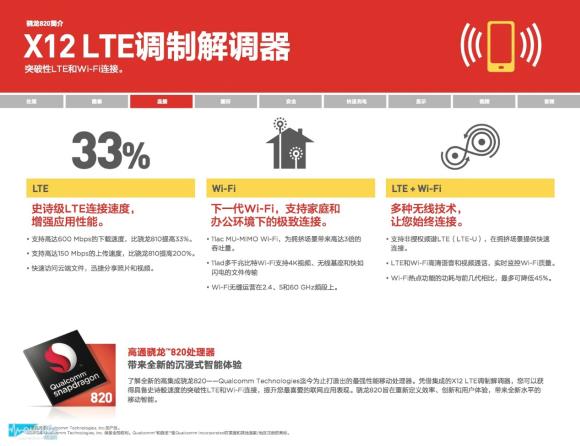 其中前者的图形性能相比前代Adreno 430最高提升40%、功耗降低40%,Hexagon 680 DSP和X12 LTE则可大幅度提高手机的续航能力、改善弱光拍摄效果,提高上网速度及信号传输能力。