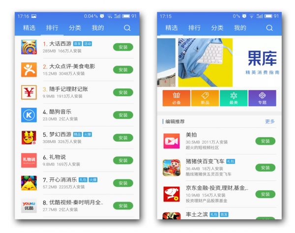 应用商店要保持持久的活力需要不断有新鲜血液的注入,显然少不了与应用开发者的合作,良木众多,魅族是如何吸引开发者的?据悉,魅族应用商店目前有“首发”,“活动”等模块,还有新品自荐、专题开放申请等政策。只要应用能够达到魅族对于产品品质的要求,魅族应用商店就会定期针对应用进行推荐,可大幅提升应用的下载量;另外,应用开发者通过魅族应用商店发布的付费应用,魅族不拿一分的分成,100%归开发者所有。显然,魅族的福利政策和平台影响力有利于应用的传播,更能保证应用开发者的收益。反过来看,不断涌入的新应用也能大幅增加用户对于魅族应用商店的新鲜感及粘性,从长远来看,魅族应用商店与应用开发者之间的合作是共赢的。
