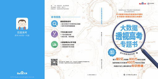 距离百度教育事业部成立没有几天,百度文库事业部又于近日发布了百度高考APP的升级迭代:APP关联线下实体教辅书等功能上线,与百度出品的首款针对高考学生的《大数据透视高考》教辅书正式打通。百度在教育领域的持续发力,引发了不少教育专家的关注,湖北省英语高考命题员陈定逵指出:“考场如战场,知己知彼百战百胜。该书基于百度的大数据优势,对五年的高考真题进行分析,帮助考生不仅能精准地了解而且能熟练地掌握高考考点和答题技巧,让高考备考事半功倍。”