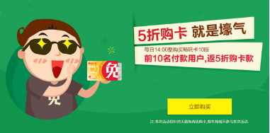 在活动期间,每天下午2点进行整点限量购,用户在店内付款购买畅玩卡10版,就有机会享受购卡金额的5折返还。
