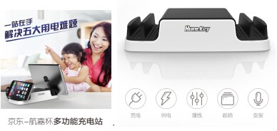 航嘉多功能充电站产品是集充电、供电、理线、收纳、支架五大功能于一体,其设计灵感源于文房中的“笔架”,古为今用,引入智能产品的支架设计之中。所采用的三角稳定结构,智能产品放置更安全。同时,由航嘉专业的产品研发介入,融入了时下最新的充电器功能与保护模块,使产品在充电品质上不输于原装充电器,在安全、可靠性上,遵循高规格国际化标准。