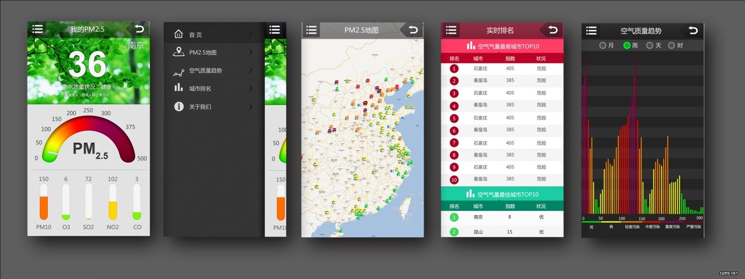 再如,为了追踪雾霾的源头,云创大数据还率先将环保与大数据相结合,自主研发了每个监测点仅为国外产品价格几十分之一的PM2.5云监测平台。该平台部署大量的空气质量监测自动站,通过GPRS将数据实时传送到云计算中心,实时监测,动态感知污染源,在云计算平台上精准呈现、动态跟踪整个城市的空气污染情况,用户还可通过免费的“我的PM2.5”App随时随地查看身边的空气质量情况,可为环境管理与人们的日常出行提供参考。