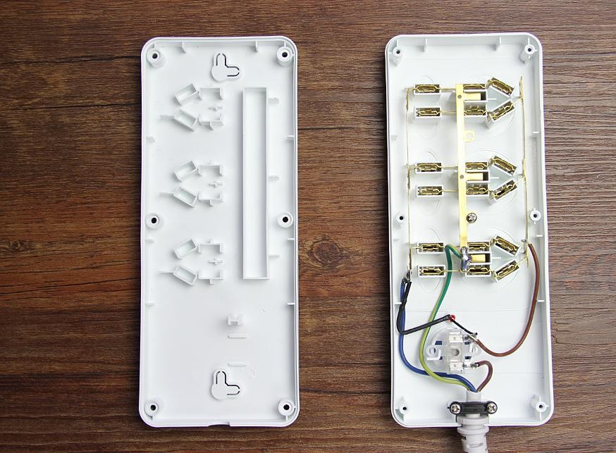 对于排插这种安全性很重要的电气产品来说,做工是非常重要的。航嘉SM603采用了家族式的一体式铜套设计,内部没有额外焊点,大大减小了工作时的接触电阻,于是工作温度得到了有效控制,节约电能的同时也更加安全。