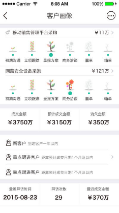 据仇世滨介绍,他们主要看中的功能主要是:事中环节的拜访客户的功能,信息发布和内部沟通非常及时;事后的分析功能,信息全面、丰富,可以作为公司整理销售和客户信息的“数据库”。