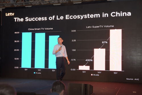 图:乐视控股高级副总裁、乐视致新总裁梁军用一组数据证明乐视的成功