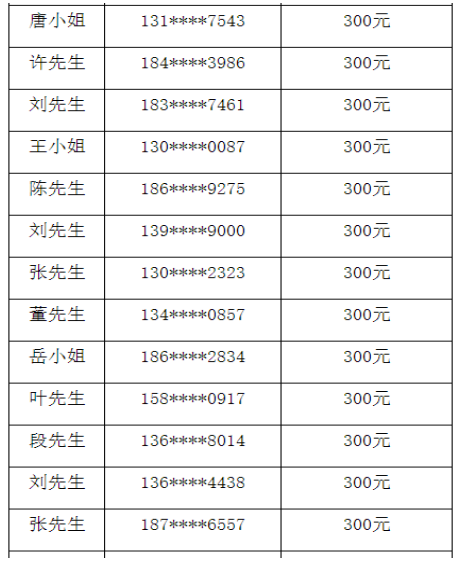 300元现金红包获奖名单如下: