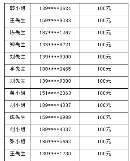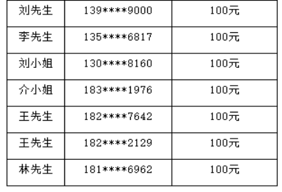 100元现金红包获奖名单如下: