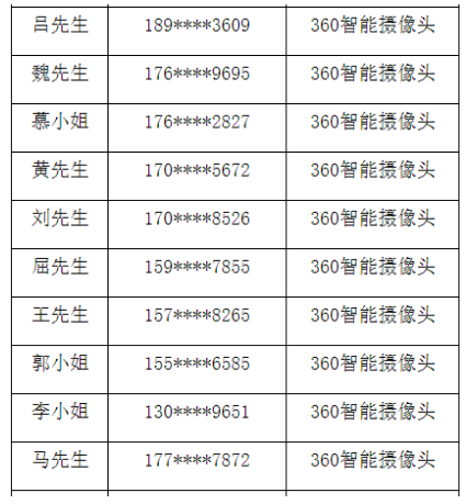 360智能摄像头获奖名单如下: