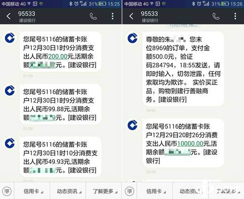 谁知,第二天一早醒来,朱先生的手机收到了一堆银行发来的通知短信。查询发现朱先生的银行卡一晚被盗刷26笔消费交易,大部分为小额支付,最小的一笔49.93元,最大的一笔有整整1万元的支出。