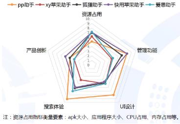 艾媒数据显示,对于iOS手机用户,除了自带的App Store,其他苹果手机助手各有自己的优势。如获益于资讯类板块的增添,苹果助手在产品创新上得分较高; PP助手在搜索体验、UI设计、管理功能上都有较大的优势。