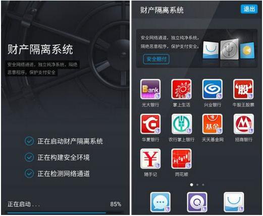 针对以上问题,360 OS的开发人员在独立于主系统之外又新建了一个完全独立的财产隔离系统,作为一个独立纯净系统,它与主系统并行不孛,在运行之后,只有获得系统许可的网银和支付APP才可运行,系统使用的网络会自动连接到360的安全VPN,避免被不安全WIFI控制,系统中短信和网页浏览器被严格保护,整套防护方案贯穿网购的各个环节,确保安全无死角。