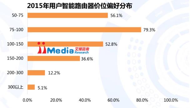 与此同时,报告显示2015年用户购买智能路由器的价位偏好分布主要位于75元-100元,150元以内的占到价位偏好的前三名。艾媒分析师认为,这主要是因为多数用户相对依重的还是信号增强,安全性等传统性能,用户习惯尚未培养成型,智能家居尚未成熟,因此智能路由器的“智能”附加价值尚难以体现在用户偏好的价格上。