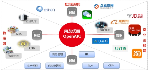 用友U8+OpenAPI产业链平台作为云上数据连接与交易平台,不仅仅是用友自身应用服务的拓展,也是对用友的产业链合作共赢理念的全新诠释——它在用友此前通过企业互联网化打通横向社交营销数据集成的思路上,第一次深入企业内部数据的纵向集成领域,为企业开放10大领域201个ERP相关接口,为开发SaaS应用及客户化开发提供强有力的技术支持,同时为开发者提供SaaS应用线上交易平台,更为关键的是因为有了这个平台,企业应用的异构系统有了开放式的数据接口,使得实现数据资源的充分整合成为可能。