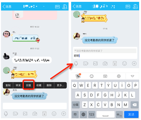 值得一提的是,在QQ群可以指定某些成员的消息进行回复,而被指定的用户将收到通知提醒。如此,即使在消息量过多的情况下,在群内实现1V1对话,方便用户沟通。
