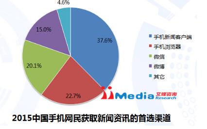 艾媒咨询报告显示,2015年中国手机新闻客户端在手机网民中的渗透率达77.8%,相比2014年的71.0%提升明显,但增长势头明显减弱。市场增长势头减缓,不过新闻客户端粘度日益增强,已成为指上一族日常生活密不可分的一部分,近四成手机网民通过客户端获取新闻。