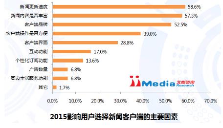 根据报告,在诸多维度中,2015年用户对新闻更新速度、内容是否丰富提出更迫切的需求,这也表明各新闻客户端对重大事件最先通过弹窗传播的重视是有意义的。