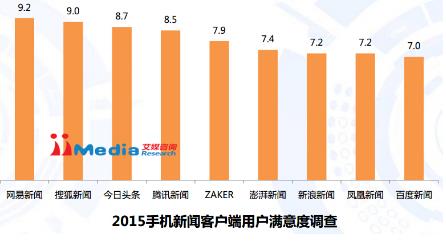 摘要:近日,iiMedia Research(艾媒咨询)发布了《2015-2016中国手机新闻客户端市场研究报告》报告显示,用户满意度上,网易新闻客户端排名第一,下来依次是搜狐新闻