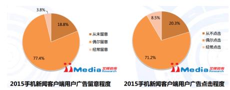 艾媒咨询报告显示,超过八成(81.2%)的用户留意过手机新闻客户端上的广告,接近八成(79.7%)的用户点击过广告。单纯依靠广告的盈利模式比较单一,且不能够覆盖高昂的新闻采集成本。比如澎湃新闻客户端一直未有明确的盈利规划。对于其他新闻客户端而言,盈利问题将是发展的拦路虎,未来可仿照国外媒体,探索付费阅读、互动广告、O2O等盈利模式。
