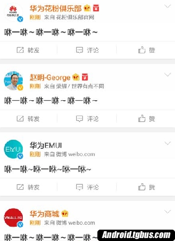 1月25日至1月27日,华为消费者BG官方微博每晚21点准时发送一条微博,内容为“咻一咻~咻一咻~咻一咻”,并且华为其他官微平台及高层也相继转发,迅速形成热门话题,引发围观。