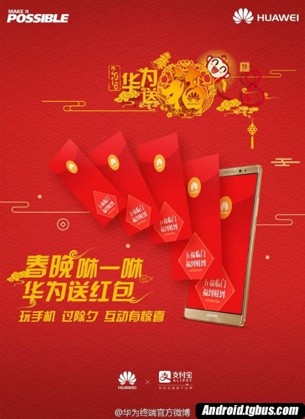 今日,华为终端官方微博正式公布,将会在除夕夜的春晚为广大观众发红包,送出猴年祝福。原来埋了这么久的伏笔就是为了给大家送祝福啊!