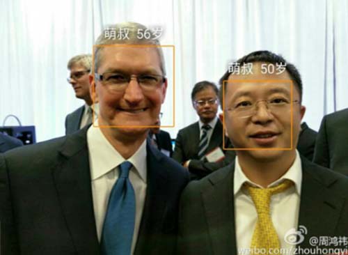 图5:周鸿祎曾用自家的360手机跟苹果CEO库克测过脸龄