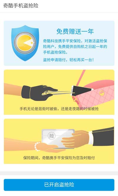 图6:360手机除了远程锁死功能外,还为用户免费提供一年盗抢险