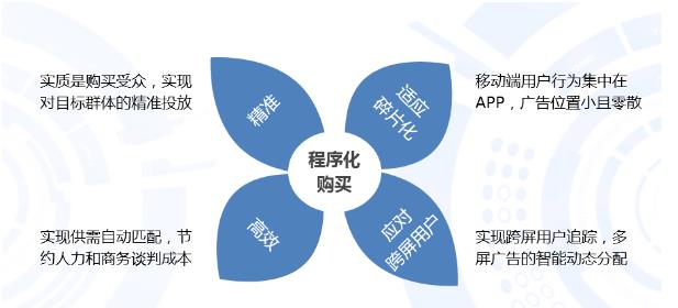程序化购买具有精准、高效的特点,能够很好地适应移动互联网带来的碎片化和跨屏化。艾媒咨询分析师认为,未来三年程序化交易将成为移动广告的重要组成部分,并有望成为下一个百亿级市场。