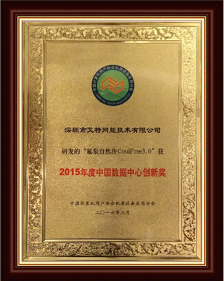 艾特网能氟泵自然冷CoolFree3.0喜获业界权威奖项“2015年度中国数据中心创新奖”