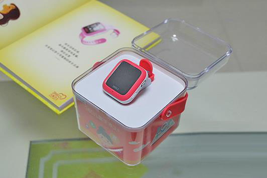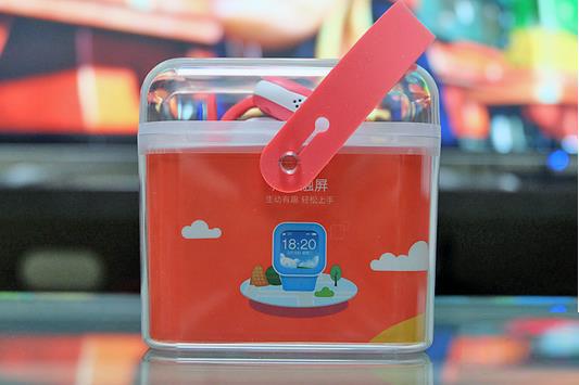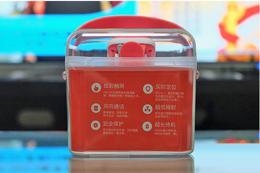 打开密封的透明上盖,一睹儿童手表3S真容,宝贝被紧紧的固定在泡沫缓冲块中,同时缓冲块紧紧的卡在包装盒内侧,保证了产品在运输过程中的安全,防止脱落而损坏。