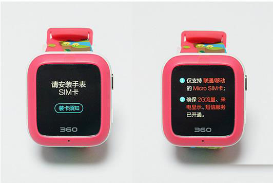 手表未装手机卡开机的话,手表自动跳出以上提示,让用户轻松了解装卡须知,比较人性化。