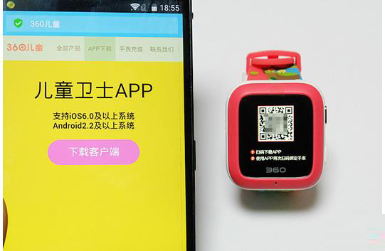 通过扫描手表提供的二维码下载手机儿童卫士APP软件,支持苹果6.0及以上系统和安卓2.2及以上系统,可见APP的适用范围还是比较广泛的。通过软件再次扫描手表二维码,添加并绑定手表,整个绑定过程还是比较快速的。