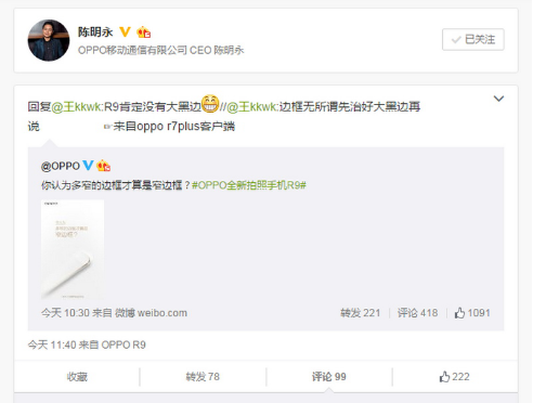 OPPO CEO陈明永先生亲口证明“R9肯定没有大黑边”