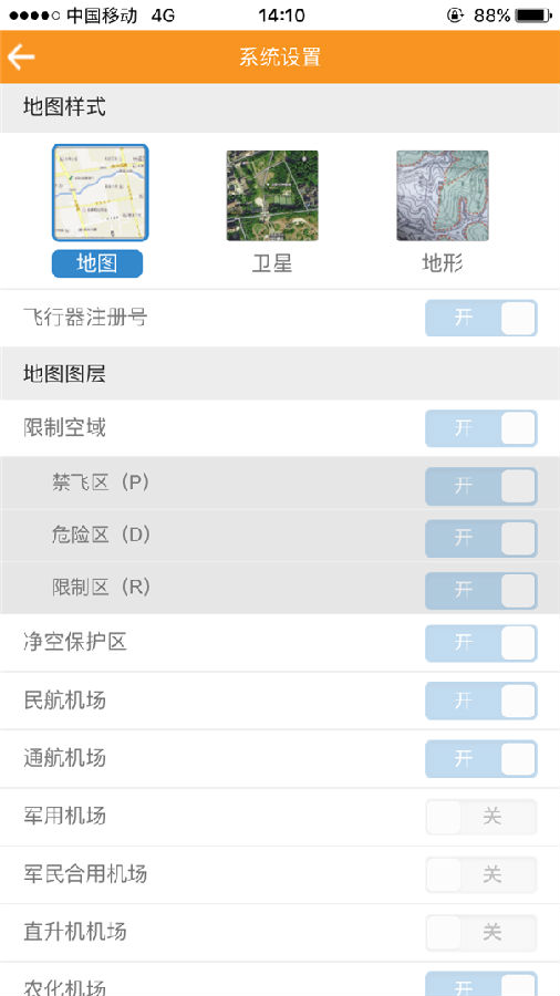 系统设置提供了多种维度的地图样式、限制空域、民航机场、净空保护区等功能。