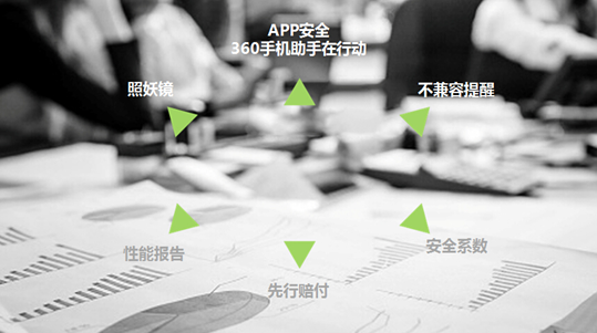 面对山寨/盗版App问题突出、手机App恶意行为泛滥、APP不兼容问题严重的“三座大山”,360手机助手作为国内用户规模最大的安卓应用商店,连续出招应对。先后推出了面向用户展示App性能报告、当前APP不兼容本机时给予提示、用户可以查看App的安全系数、“照妖镜”功能让山寨App现原形、先行赔付等五个大招。