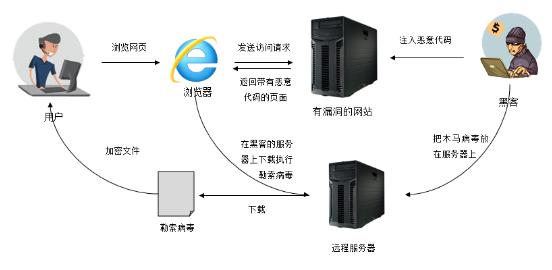 图:敲诈者病毒利用网页挂马的过程