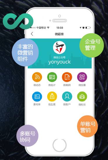 同样,上微信、与粉丝互动不再是游戏,超客营销的微超客把它变为无限商机。通过微超客丰富的微营销组件、多账号协同、企业号管理、单账号营销等工具,与粉丝充分互动,实现粉丝分类管理和精准营销,捕捉海量商机。