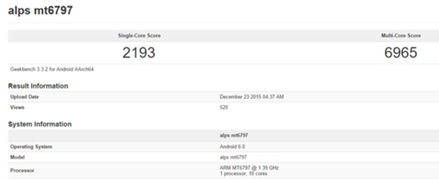 同时,对比了数据库中MT6797(Helio X20)的跑分,单线程最高可达2193,多线程则达到了6965,从结果看来X25跑分低于X20的,有点不合常理,估计PRO 6目前还在调教中