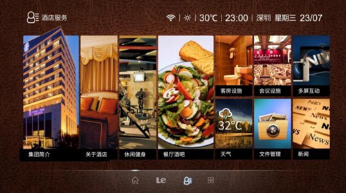 作为榜单上唯一使用智能电视机作为承载平台的产品,乐视集团投资的“智驿信息”无疑是一匹黑马。他绕过了机顶盒这种过渡性产品,直接将电视机作为智能化的主体。不仅能为酒店提供乐视的大屏电视机作为电视机硬件,同时还可以依托乐视强大的媒体与版权资源库让酒店住户看到最新的节目内容;更有意思的是他为酒店量身打造的系统更加精准的符合酒店行业的需求。显然比其它同行业者更加具有开拓优势。一机在手,顷刻掌握多方内容和服务,致力于帮助酒店行业实现多样化功能服务的智驿,在一年多的时间内,成为了酒店行业最大的视讯集成系统服务与运营商。