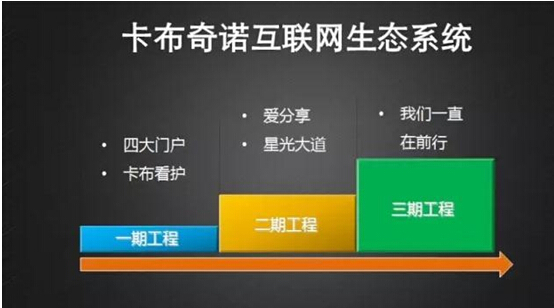 其中一期工程以老人掌上四大门户:新闻、健康、旅游、财经以及“卡布看护”为驻点,带爸妈跃入互联网智能新生活!二期工程以“爱分享”与“星光大道”为平台,破除父母孤巢的围栏!用科技的力量,让爸妈分享互联网的红利,给他们精彩、温暖、有品质的生活!