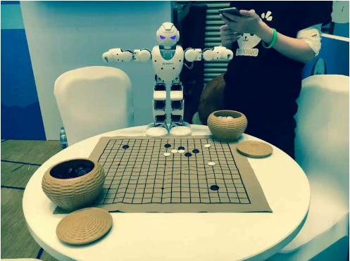 兜行展位上也非常热闹,小机器人在说“下围棋,我是专业的;做企业学习平台,兜行是专业的”,引发了现场观众的围观。