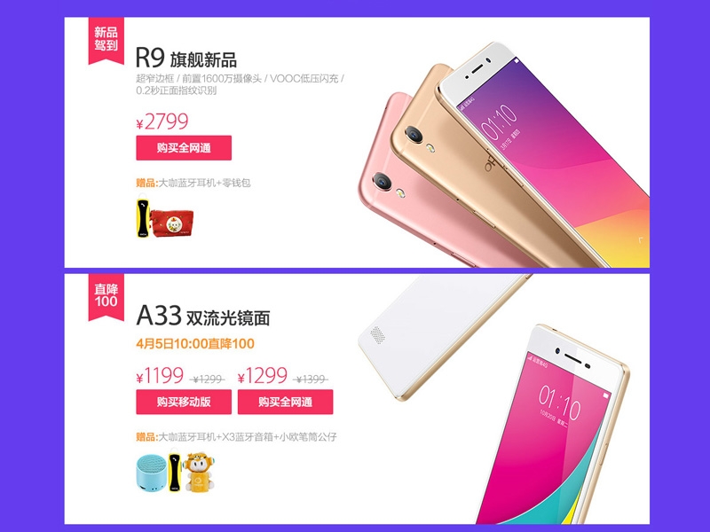 OPPO手机节来啦!除了有爆款OPPO R9的发售之外,更有OPPO A33直降100的活动,各种好礼也在等着你,近期想要购买高颜值拍照手机的用户还不赶紧行动起来,2016年4月5日10点~4月19日10点,等着你。
