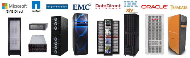 同时,传统的SAN存储通常采用封闭的架构设计和高速磁盘介质,内置高性能集群互联网络,Mellanox InfiniBand产品线以高带宽低延迟的性能优势,已经成为众多SAN存储的首选集群互联方案,包括EMC Isilon,EMC XtremIO,IBM XIV,Oracle Exadata等。