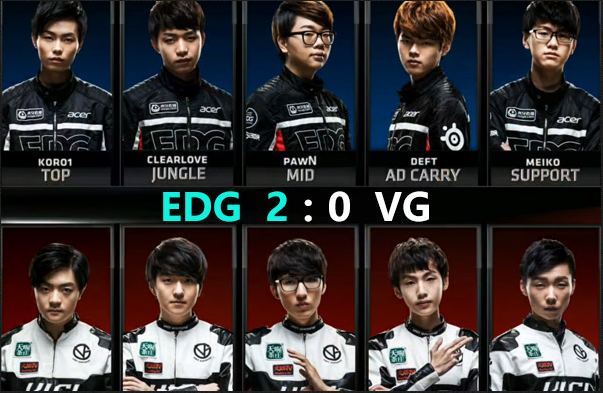 4月3日EDG迎来了VG的挑战,VG首轮比赛便错失大好开局,葬送了比赛,而在第二轮领先开局的情况下,又因为EDG“双传送”的绝妙套路,再度败北,以0:2结束了本场比赛。这两局比赛VG前期都打得很顺,但EDG最终通过临场改变策略和抓机会反打赢下比赛。另外EDG的AD选手Deft拿到了本场比赛的MVP,他这局拿出艾希就已经很少见,而且在Pawn的卡牌无限崩盘的时候自己稳稳地发育,大招开团找机会反打,团战爆炸输出,数据堪称完美。