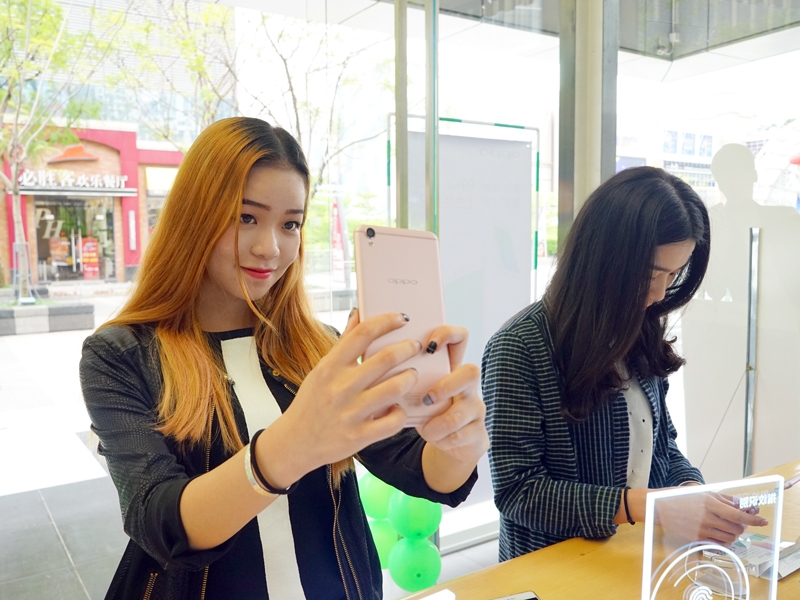 另外我们注意到的是,也许海岸城本身定位于时尚白领,因为到店取机的客户以时尚女性群体为主。我们随机采访了几名顾客,她们表示喜欢大屏幕和自拍,其中还有使用OPPO N1 mini这种主打自拍手机的老顾客。年轻女用户对OPPO手机的自拍很有信心,在当初试用了OPPO R9 Plus的臻美自拍之后,她们觉得全新的美颜自拍美得很自然,发到朋友圈也不怕被指责美颜过度或者美得太假了。