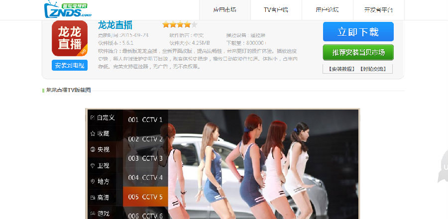 到手后开始安装应用,之前听同事说直播软件【龙龙直播】不错。于是百度找到一个智能电视网:http://down.znds.com/apk/live/2013/0928/25.html ;