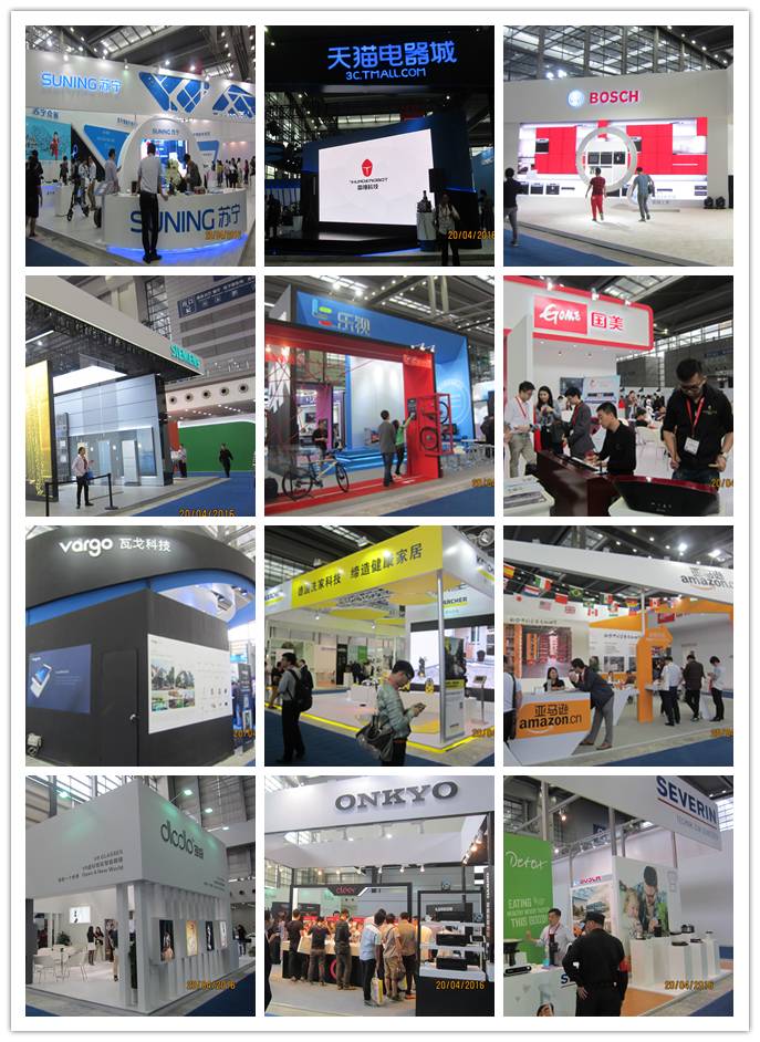 品牌展商包括:首席合作伙伴苏宁、阿里巴巴旗下天猫、博世、西门子、乐视、国美、凯驰、亚马逊、Onkyo、Severin、多新哆、瓦戈科技等。
