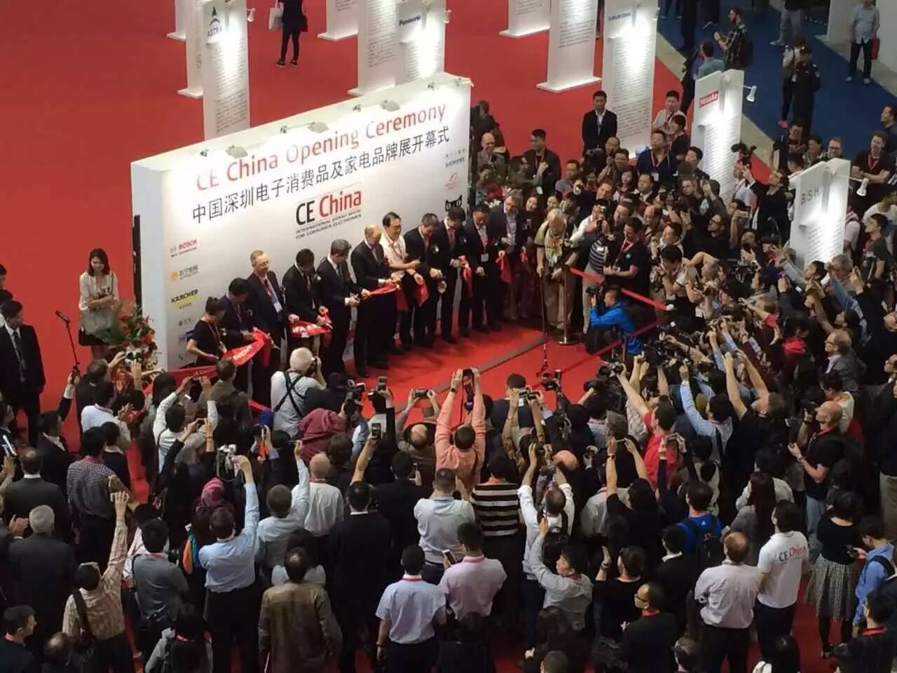 首届CE China隆重欢迎政府官员以及消费品和家电行业的商务代表到场参加,包括深圳市政府副市长陈彪先生,深圳市委副秘书长李鑫炜先生,深圳市经济贸易和信息化委员会主任郭立民先生,深圳市投资控股有限公司的总经理熊佩锦先生,阿里巴巴集团天猫电器城总裁印井先生,苏宁云商集团股份有限公司的首席运营官侯恩龙先生,博世西门子公司中国区总裁兼CEO的Roland Gerke先生,国美董事会主席张大中先生,IDG亚洲区副总裁徐洲女士,Severin董事总经理Ralf Wietek及柏林展览有限公司行政总裁Christian G?ke。