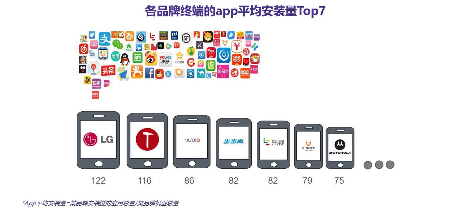 LG和锤子品牌的用户平均每台移动设备的应用安装量达到100个以上