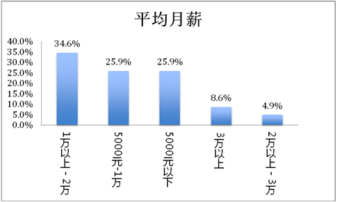本次调研结果显示,互金行业的从业者平均薪资在1-2万/月占34.6%。其次薪资在5000元以下/月、5000-1万/月各占25.9%。相对于这两年人才市场低迷的大环境,互金行业的整体收入还是不错的。