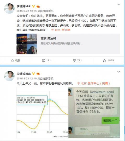 其实这已经不是魅族第一次受到大量网络攻击。去年魅族PRO 5发布会期间,魅族官网就不断遭受来历不明的网络攻击,让官网不堪重负,魅族副总裁李楠就此连续发微博表示“我们会和对手战斗到底”。最终,依靠连夜搭建的三个服务器集群和阿里云盾的保障,魅族PRO 5发布会开始至结束,官网全程保持访问畅通。